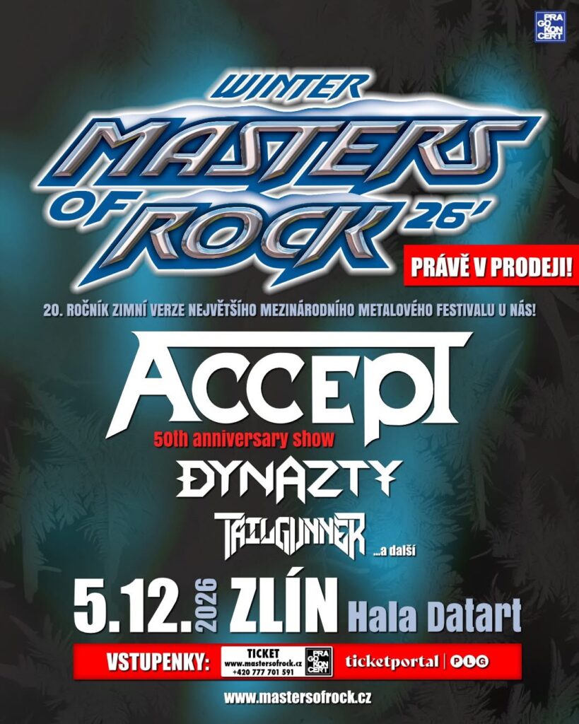 Oblíbená jednodenní zimní varianta vizovického MASTERS OF ROCK festivalu, ZIMNÍ MASTERS OF ROCK se po roční pauze vrací v plné síle a nadšení! Letos svůj 20. ročník oslaví v sobotu 5. prosince ve zlínské sportovní hale Datart, monumentální oslavou 50. výročí slavných heavy-metalových průkopníků ACCEPT! ACCEPTi vám ve své dosud největší a nejpropracovanější pódiové show představí celé půlstoletí metalové historie, a u toho by snad žádný opravdový fanoušek metalu neměl chybět! Souběžně s výročním turné chystají ACCEPT koncem tohoto roku vydat ještě speciální album k 50. výročí, které bude obsahovat nově nahrané klasiky, vzácné skladby s významnými hostujícími umělci!